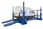 Хорошо подходит для длинобазных автомобилей. По отдельному заказу подъёмники могут быть укомплектованы тележкой с домкратом для вывешивания передней или задней оси автомобиля. Подъемник комплектуется микропроцессорной системой синхронизации подъёма-опускания платформ.