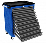 Тележка инструментальная PROFFI 950.9 комплектуется 9 выдвижными ящиками. Тележки изготовлены высотой 950 мм. Размеры: 950x660x470 мм. Масса: 57,5 кг. Грузоподъемность ящиков до 30 кг.