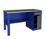 Верстак однотумбовый поставляется в разобранном виде. Нагрузка на столешницу до 600 кг. Стандартный цвет: корпус - серый глянец RAL 7030, ящики и двери тумб - синий RAL 5017. Размеры:855x1400x700 мм. Вес: 86 кг.