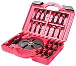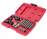 Для снятия и установки шкивов балансировочного вала. Встроенный подшипник делает работу более легкой и безопасной. Упорная пластина и комплект резьбовых переходников (9 шт.) делают возможным применение инструмента на большинстве двигателей. Диаметр круглой оправки: 125 мм.