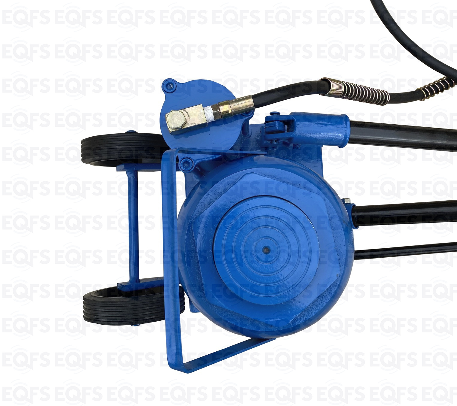 Диаметр металлических колес домкрата, позволяет легко транспортировать его по не ровным поверхностям цеха.