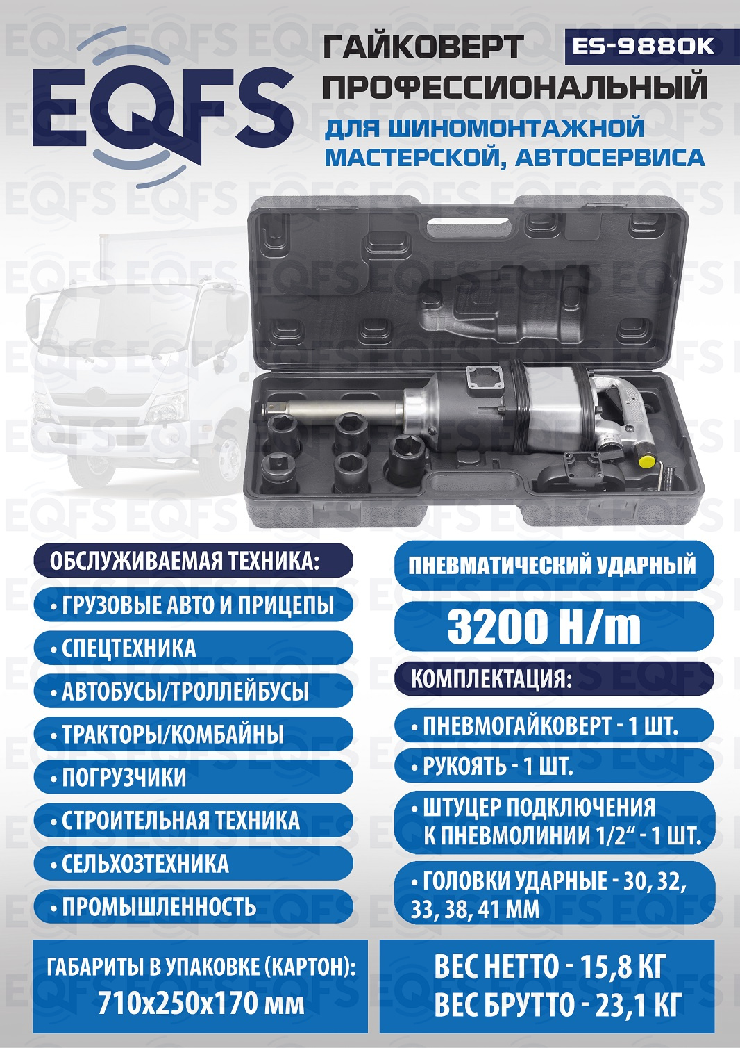 Технические особенности ES9880K Грузовой гайковерт + набор головок: