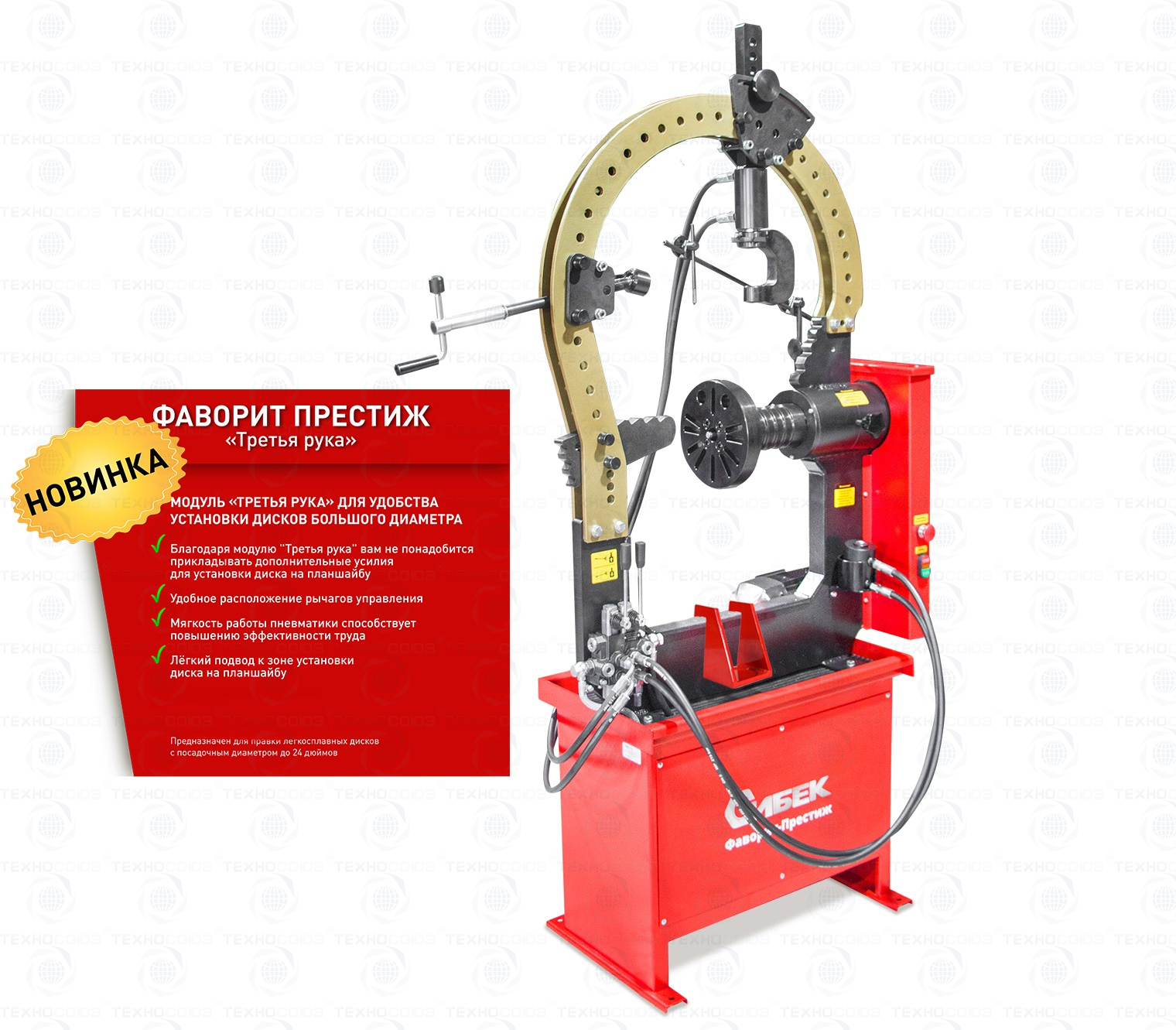 «Фаворит-Престиж» оборудован электроприводом вращения вала, который облегчает зоны правки и качество работ. Улучшенная специальная конструкция стенда с мостом для упоров расширяет возможности ремонта «восьмерок» и имеет специальный двусторонний гидравлический гидроцилиндр с захватом. Конструкция гидроцилиндра фиксирует его в любом положении так, что правка производится одной рукой, без удержания гидроцилиндра на весу.
