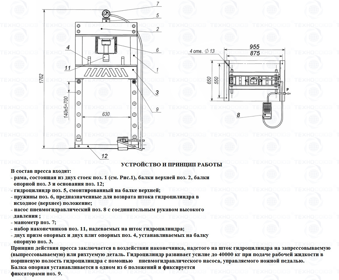 Рама пресса в сборе с гидроцилиндром и насосом ножным с соединительным рукавом высокого давления, шт. |