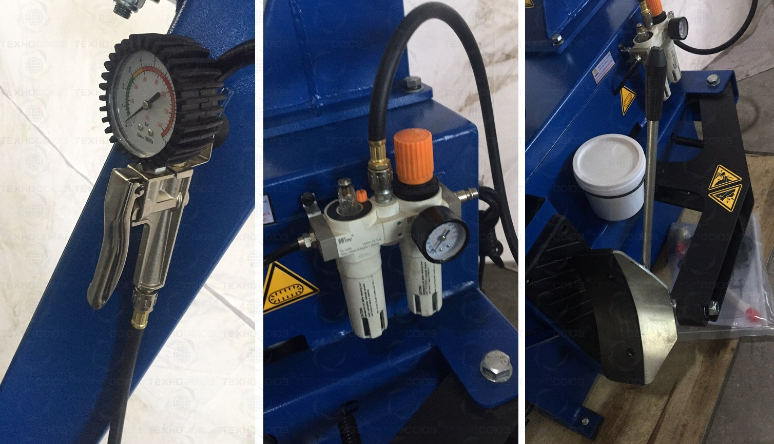 Для корректной работы шиномонтажного станка необходимо давление пневмосистемы 8-10 бар.