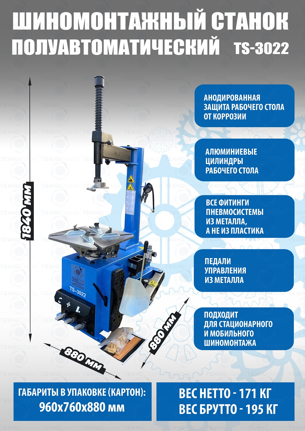 1. Устанавливается непосредственно на шиномонтажный станок и не может использоваться отдельно.